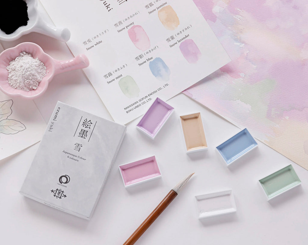日本の伝統を継承する二大老舗、株式会社墨運堂様(文化2年創業/墨製造)と、ナカガワ胡粉絵具株式会社様(明治30年創業/胡粉・岩絵具製造)の共同企画による商品です。