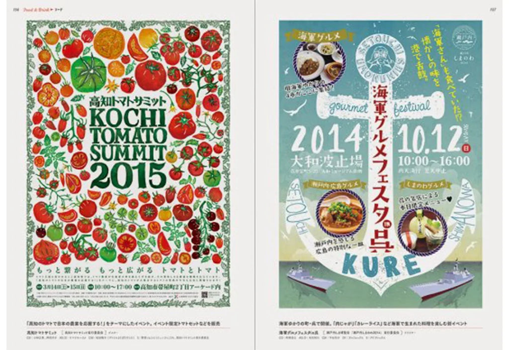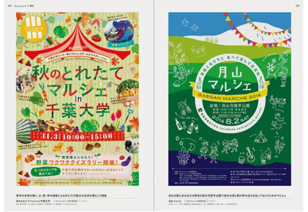 全国各地の街のイベントをより魅力的に伝えているフライヤーやポスターのデザインがたくさん掲載されています。
