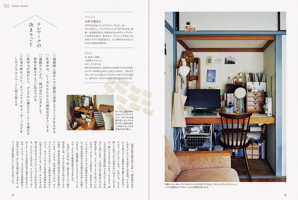 テレワークが当たり前になった今、自宅の限られたスペースで仕事をするのは容易なことではありません。環境を整備し、同時に集中力と生産性もアップさせる必要があります。本書では、「自宅オフィス」を さまざまな工夫で快適に整えている実例15例を紹介しながら、ワークスぺースの周辺に迫ります。自宅のどこにワークスぺースを設けるか、作業効率が上がる収納方法、腰痛防止のために行っていること、モチベーションをキープするために工夫している点など、テレワークを行う上でのインテリアとライフスタイルの知恵と工夫が満載の1冊です。暮らしも、仕事も、等しく大切なものだからこそ、家で働くうえでのインテリアの工夫や息抜きの方法がきっと見つかります。