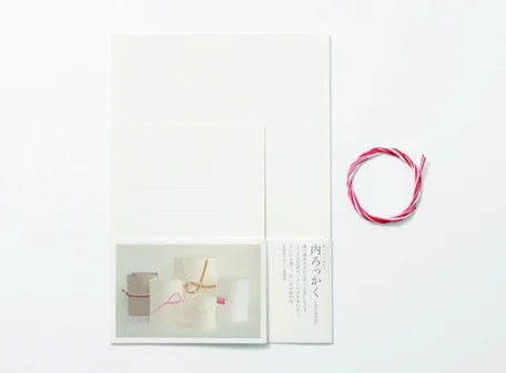 紙のサイズは、洋紙の定型A4、A5。大、小の2サイズ。水引やシールを使って自由にアレンジ。贈り物の箱にしてはいかがでしょう。