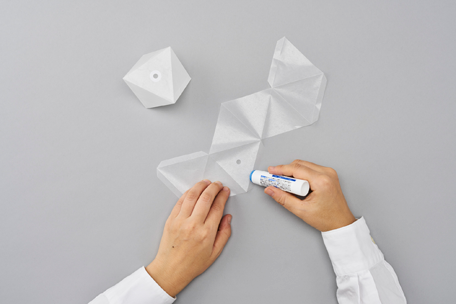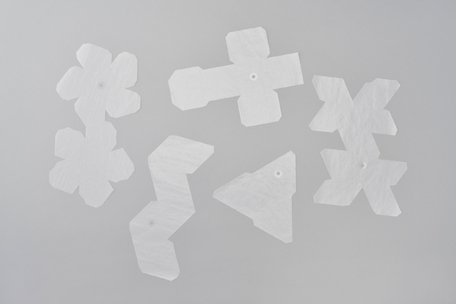 Platonic Solid Paper Balloonはその5種類しかない、正多面体をかみふうせんにしました。サイズはちょうど直径10センチの球体に内接する大きさです。