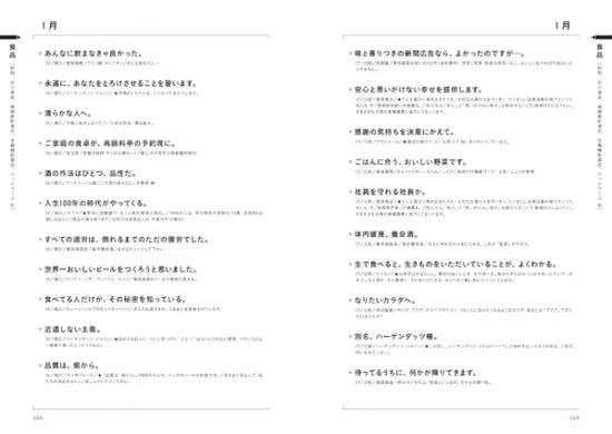 食品・ファッション・金融から行政、公共広告まで様々な業種のキャッチコピーを余すことなく約600ページのボリュームで紹介します。